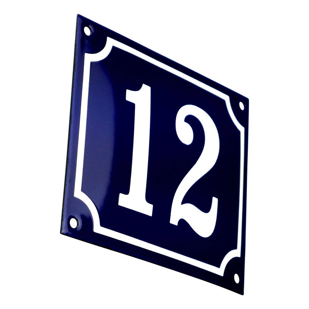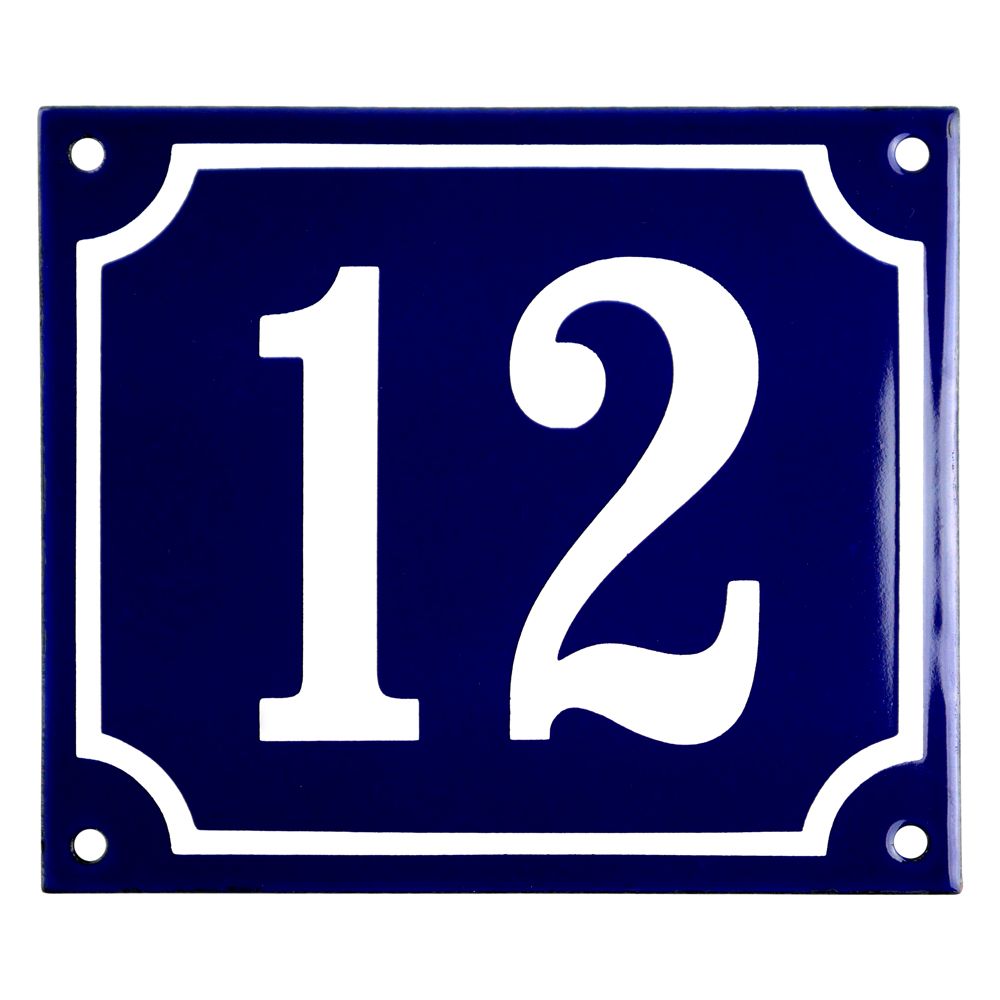Emaljskylt 12 blå - vit 14 x 12 cm modell 11-5