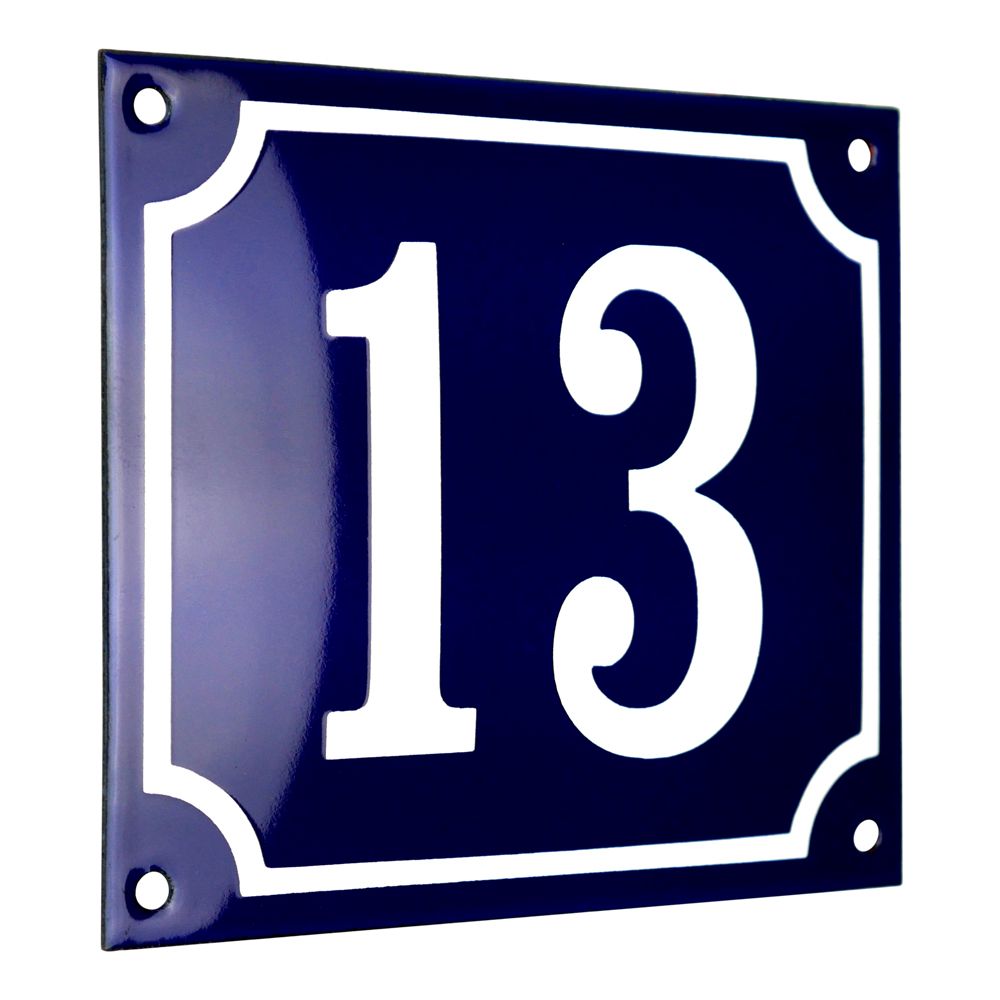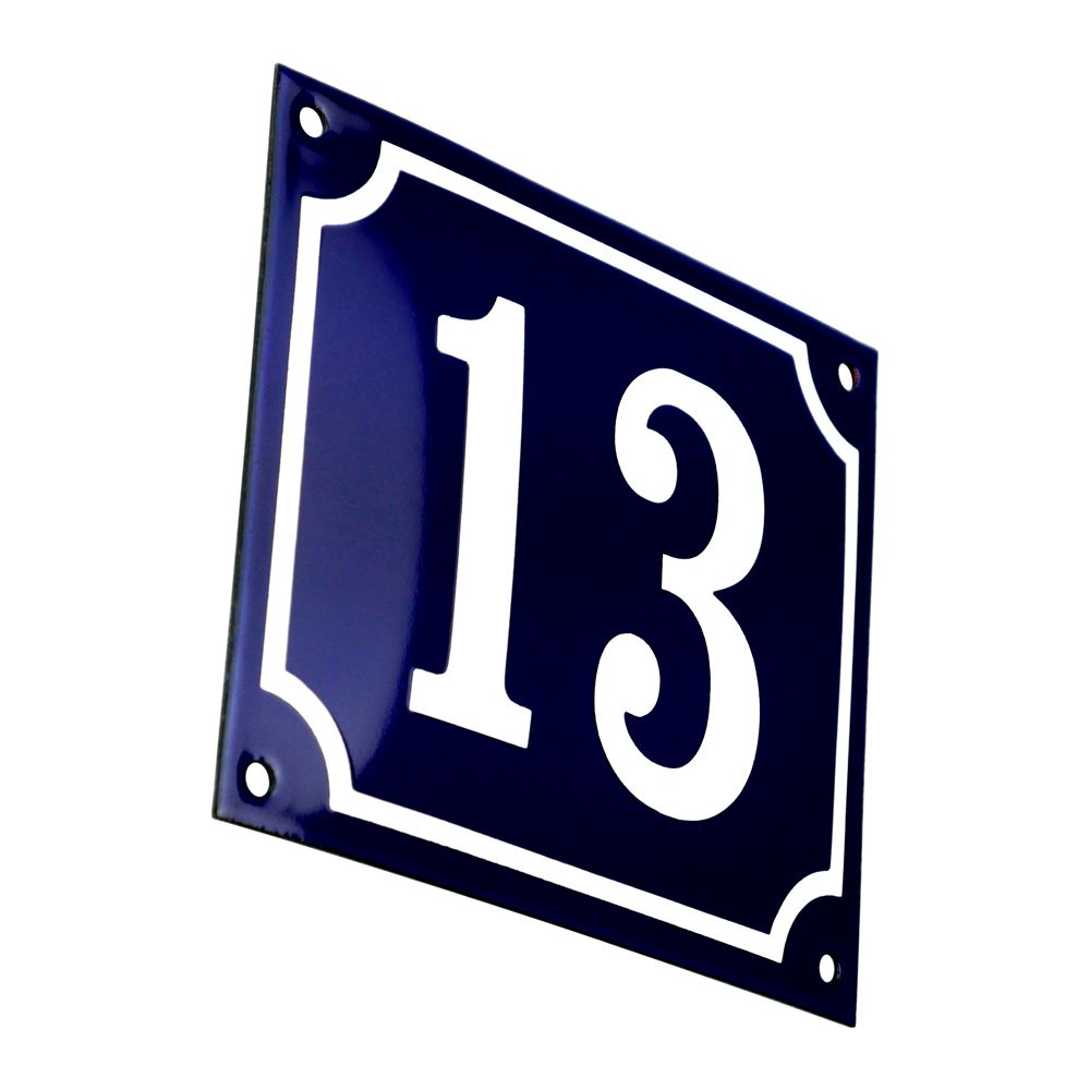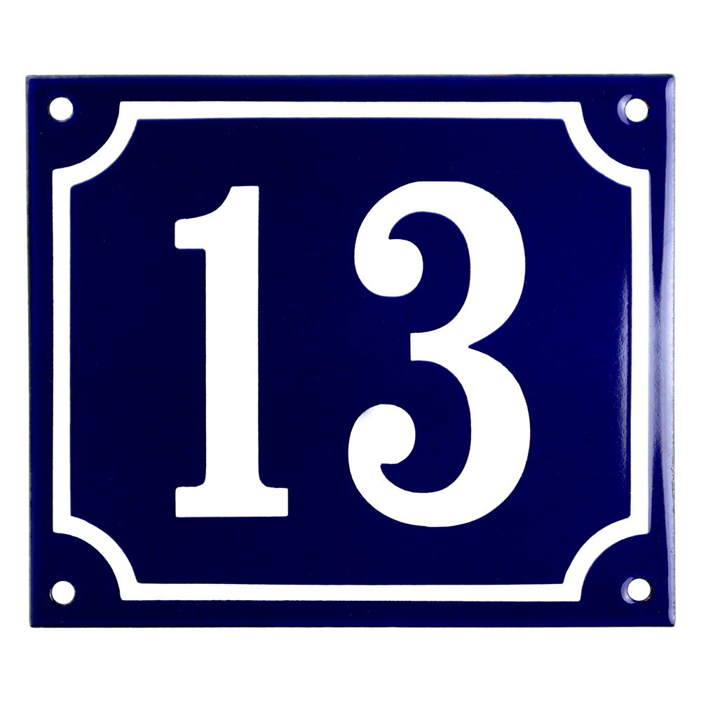 Emaljskylt 13 blå - vit 14 x 12 cm modell 11-5