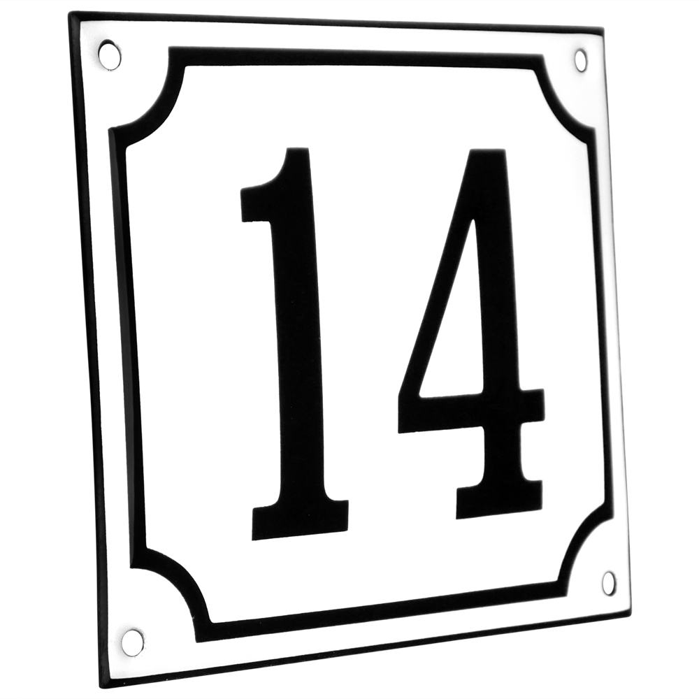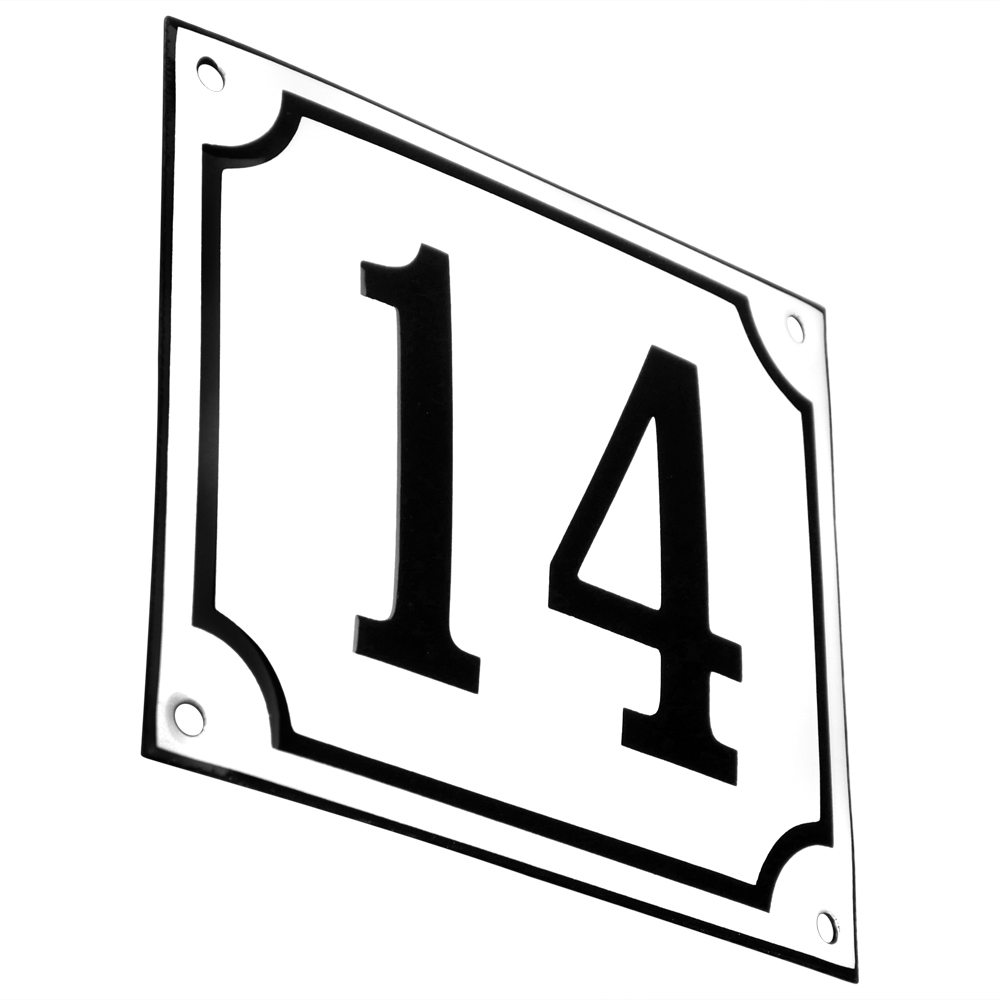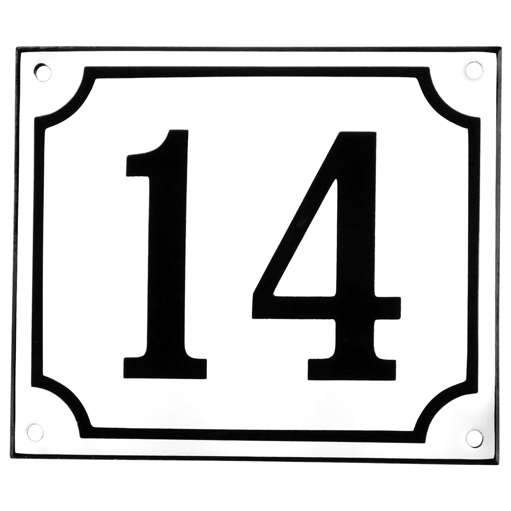 Emaljskylt 14 vit - svart 14 x 12 cm modell 10-5