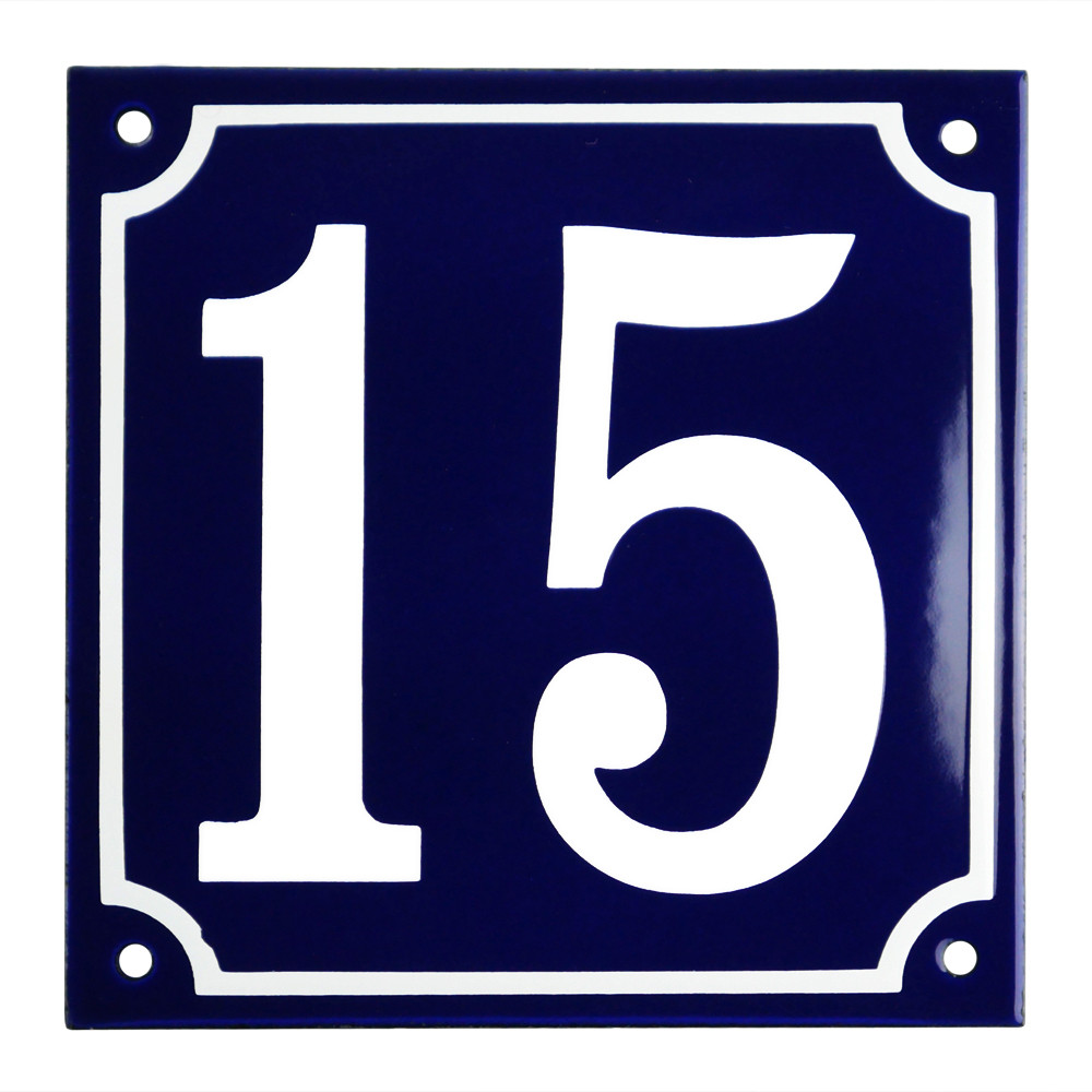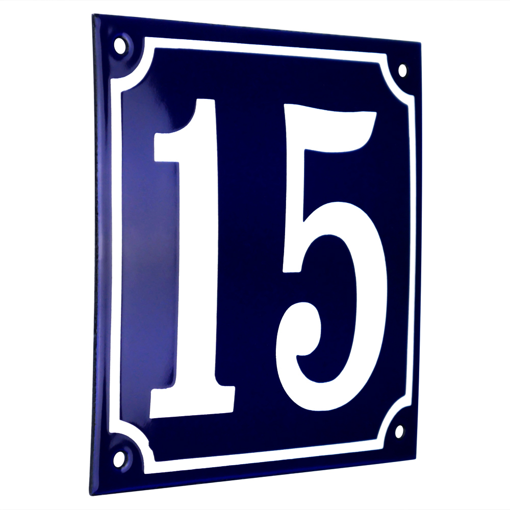 Emaljskylt 15 blå - vit 15 x 15 cm modell 11-5