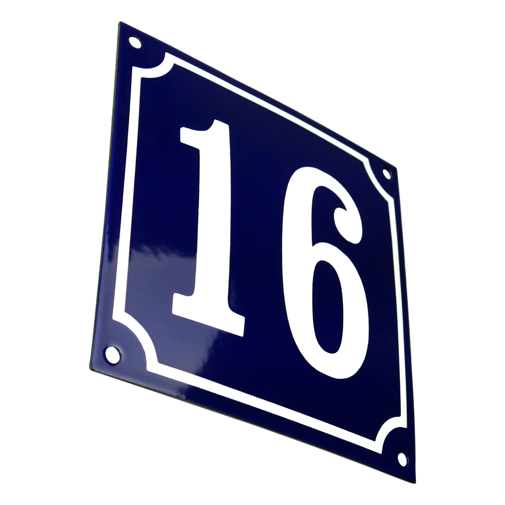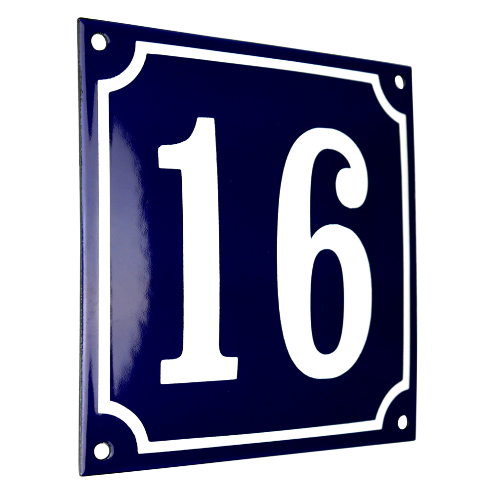 Emaljskylt 16 blå - vit 15 x 15 cm modell 11-5