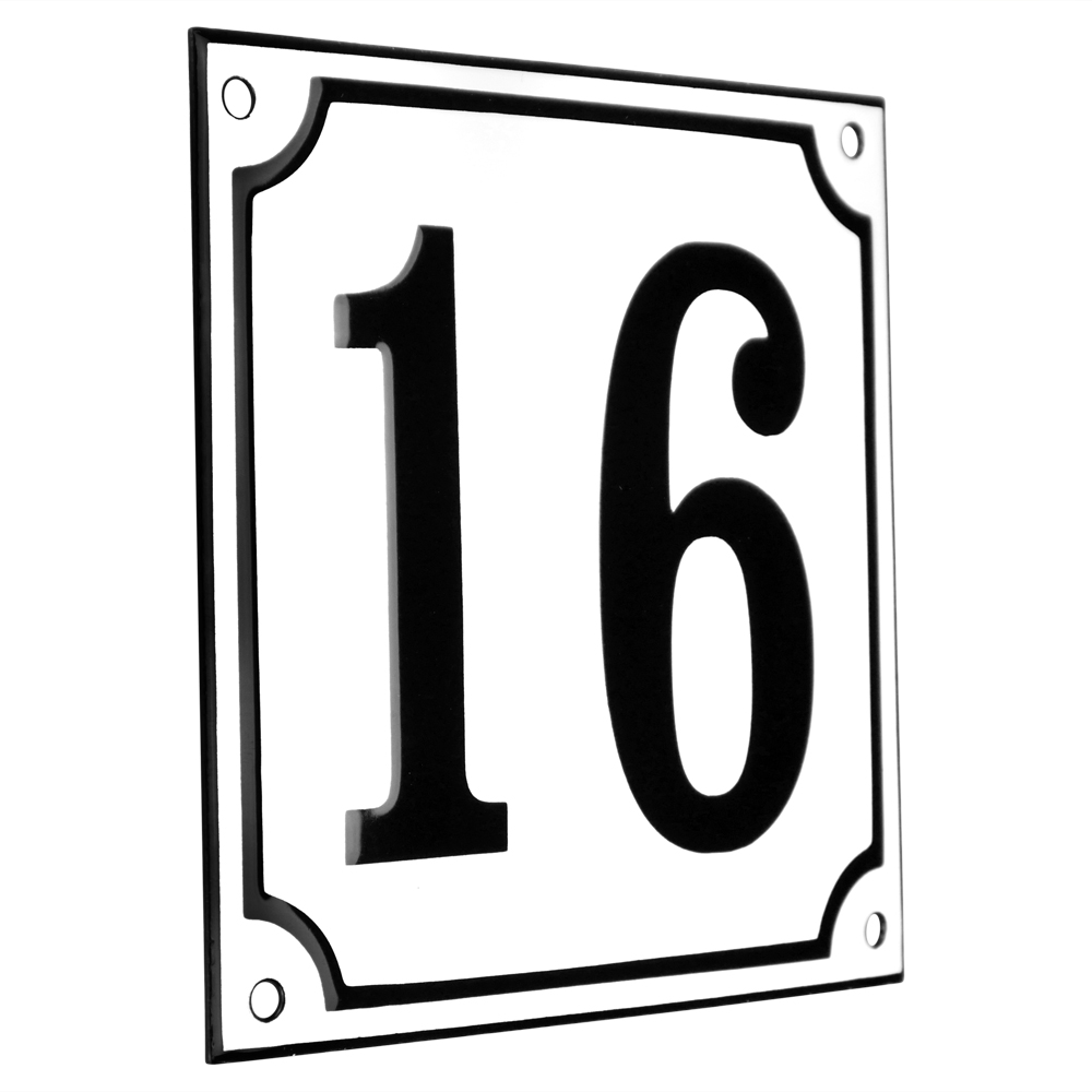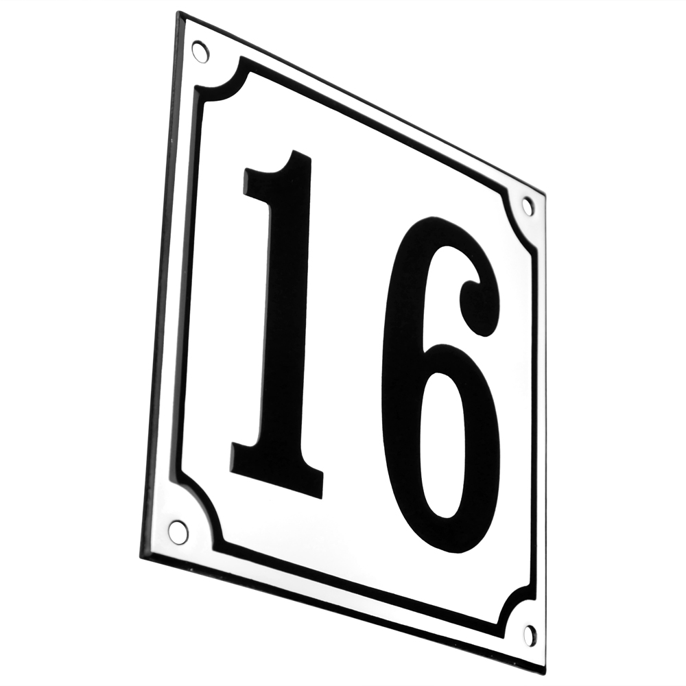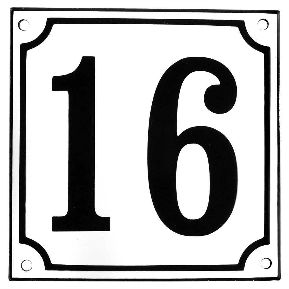 Emaljskylt 16 vit - svart 15 x 15 cm modell 10-5