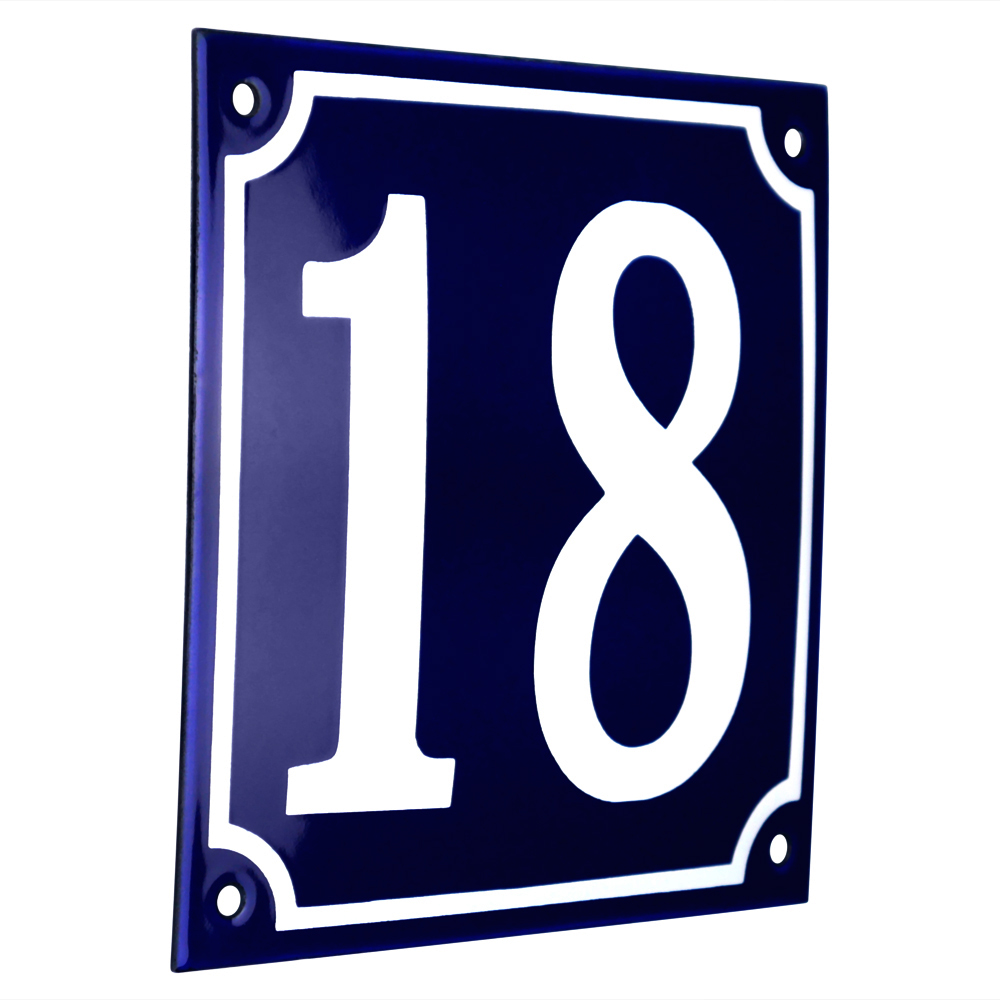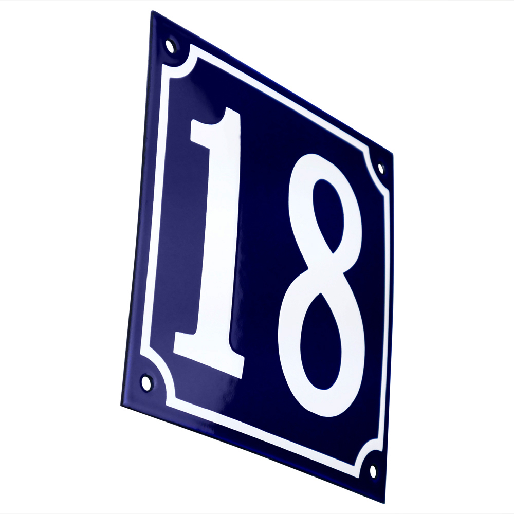 Emaljskylt 18 blå - vit 15 x 15 cm modell 11-5