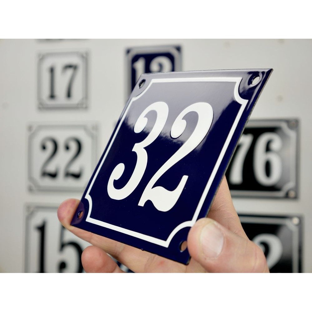 Enamel sign 32 blue - white 14 x 12 cm model 11-fi