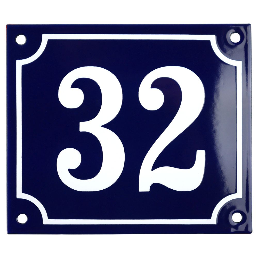 Emaljskylt 32 blå - vit 14 x 12 cm modell 11-5