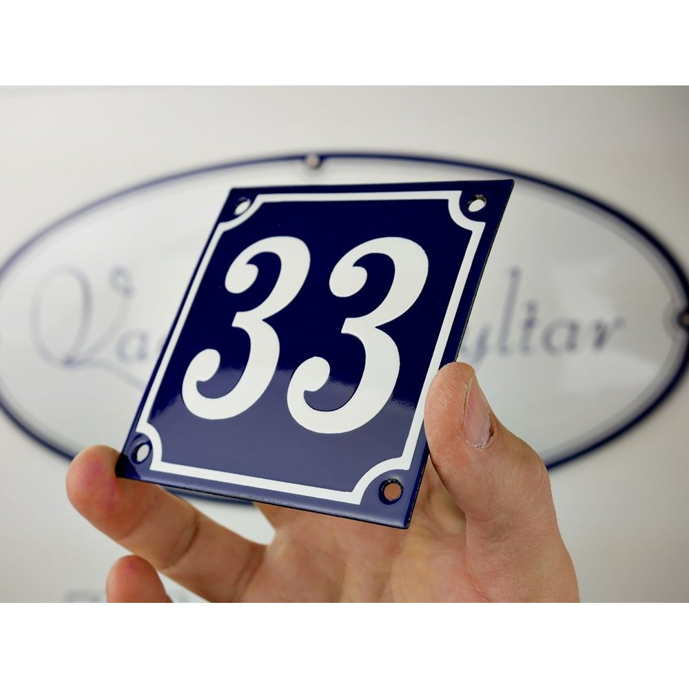 Enamel sign 33 blue - white 10 x 10 cm model 11-fi