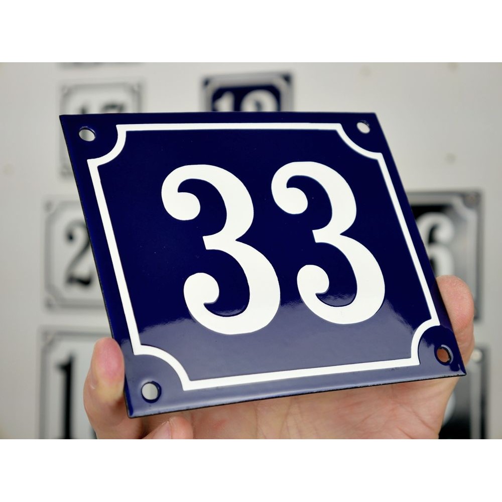 Enamel sign 33 blue - white 14 x 12 cm model 11-fi
