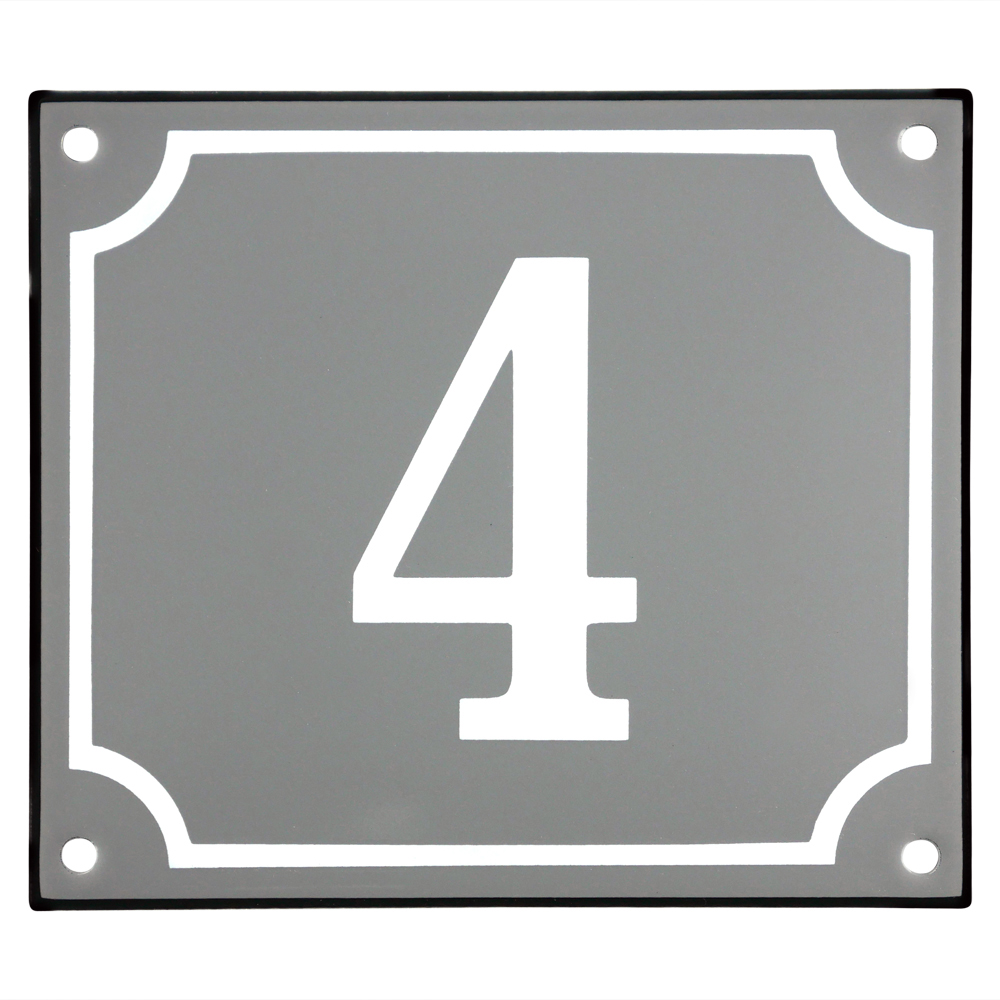 Emaljskylt 4 grå - vit 14 x 12 cm modell 18-5