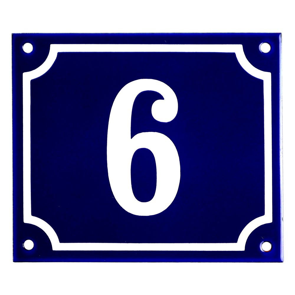 Emaljskylt 6 blå - vit 14 x 12 cm modell 11-5