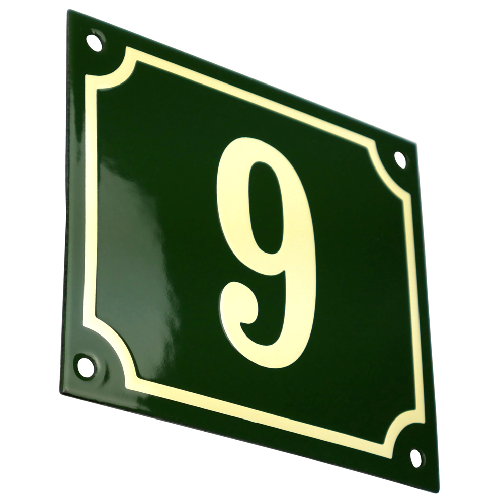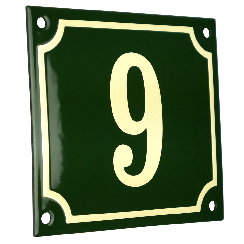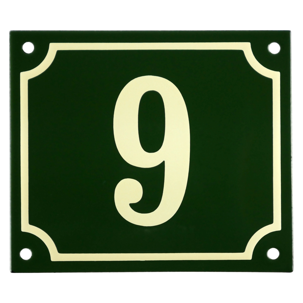 Emaljskylt 9 grön - cream 14 x 12 cm modell 17-5