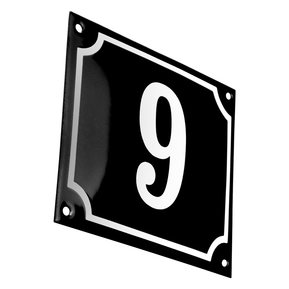 Emaljskylt 9 svart - vit 14 x 12 cm modell 12-5