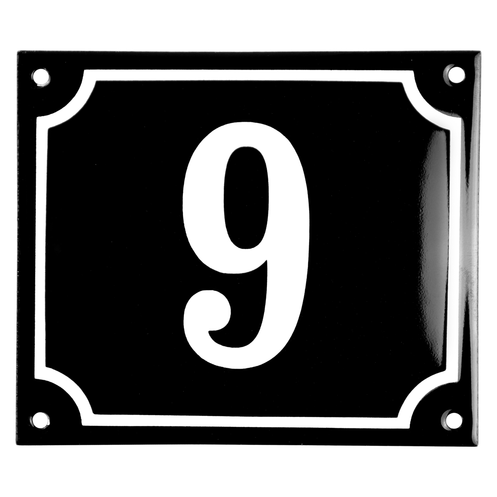 Enamel sign 9 black - white 14 x 12 cm model 12-fi
