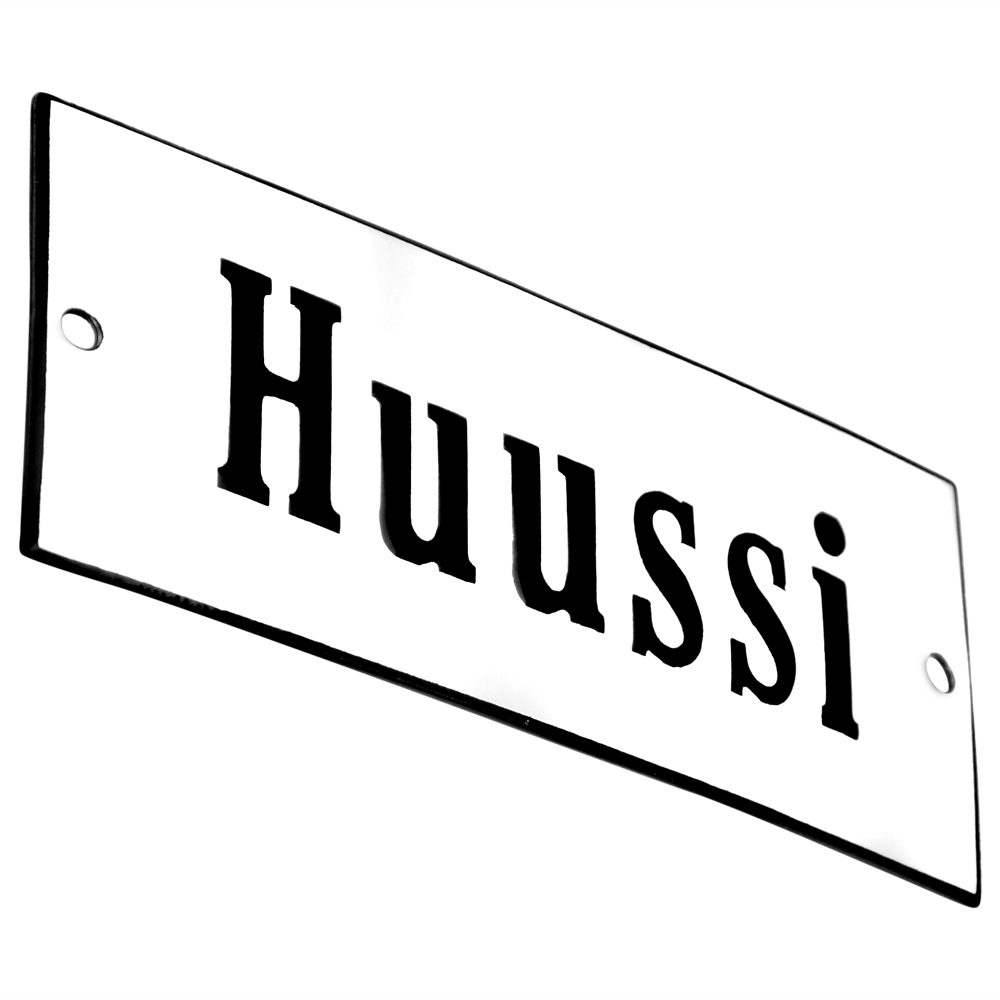 Emaljskylt Huussi vit - svart 12 x 5 cm modell 4-5