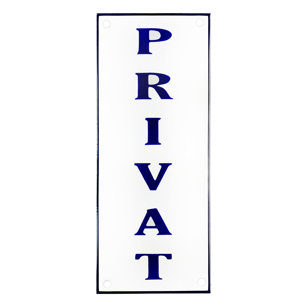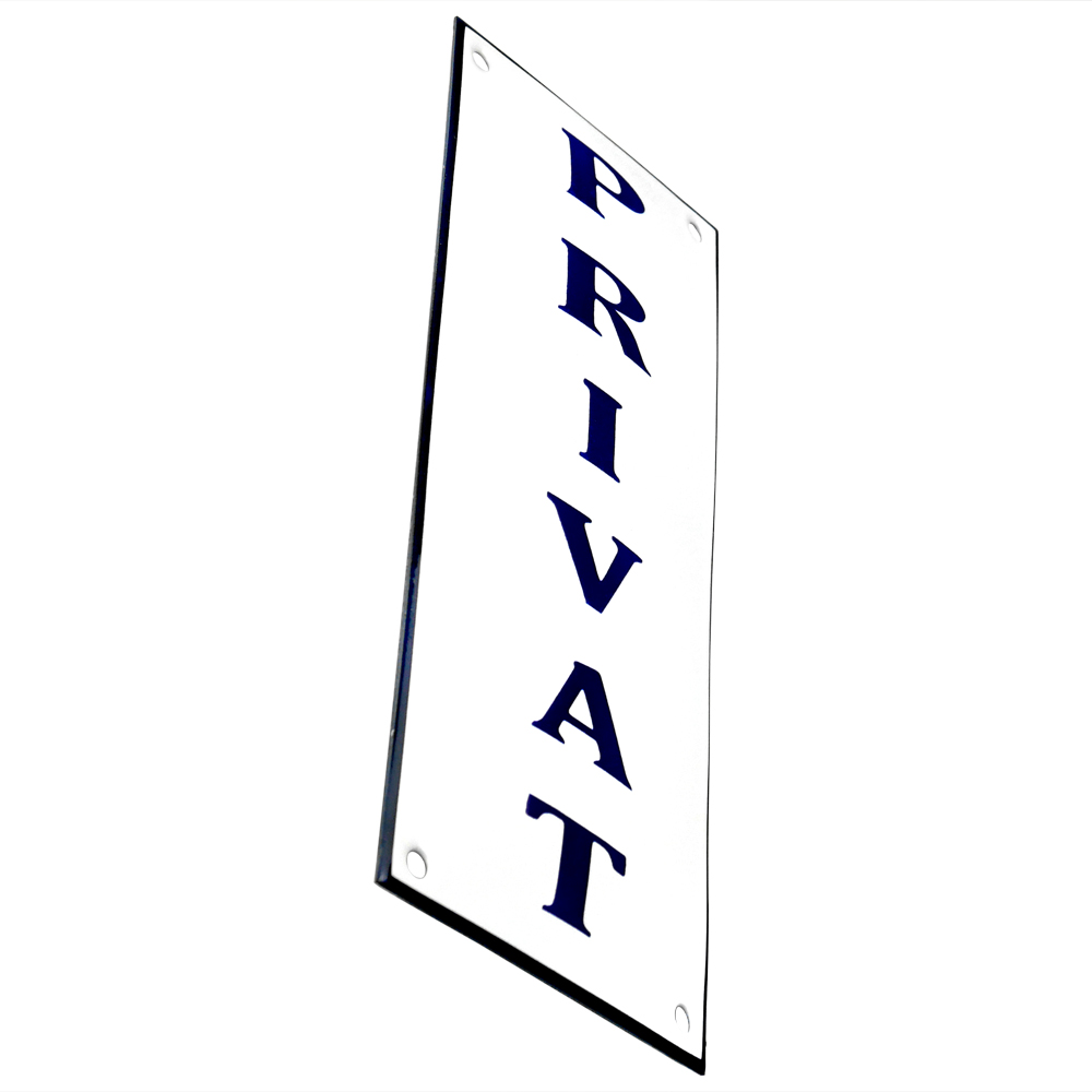 Enamel sign PRIVAT white - blue 20 x 12 cm model 36-fi..